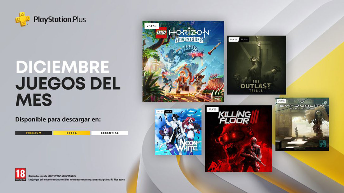 ‘Neon White’ y ‘The Outlast Trials’ se podrán descargar en PS4 y PS5, mientras que ‘LEGO Horizon Adventures’, ‘Killing Floor 3’ y ‘Synduality Echo of Ada’ estarán disponibles en su versión para PS5. Con cinco títulos y perfiles muy distintos dentro de la misma tanda, diciembre se perfila como uno de los meses más generosos de PS Plus Essential en 2025.