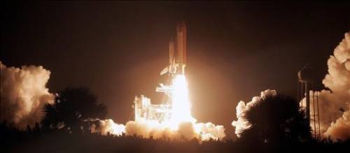 La nave partió segundos antes de la medianoche, hora local, 03.59 GMT del sábado. "Todos los sistemas de Discovery funcionan correctamente", dijo el centro de control poco antes de que se desprendieran los dos cohetes externos que le ayudaron a escapar de la gravedad terrestre e iniciar su misión de 13 días en el espacio.