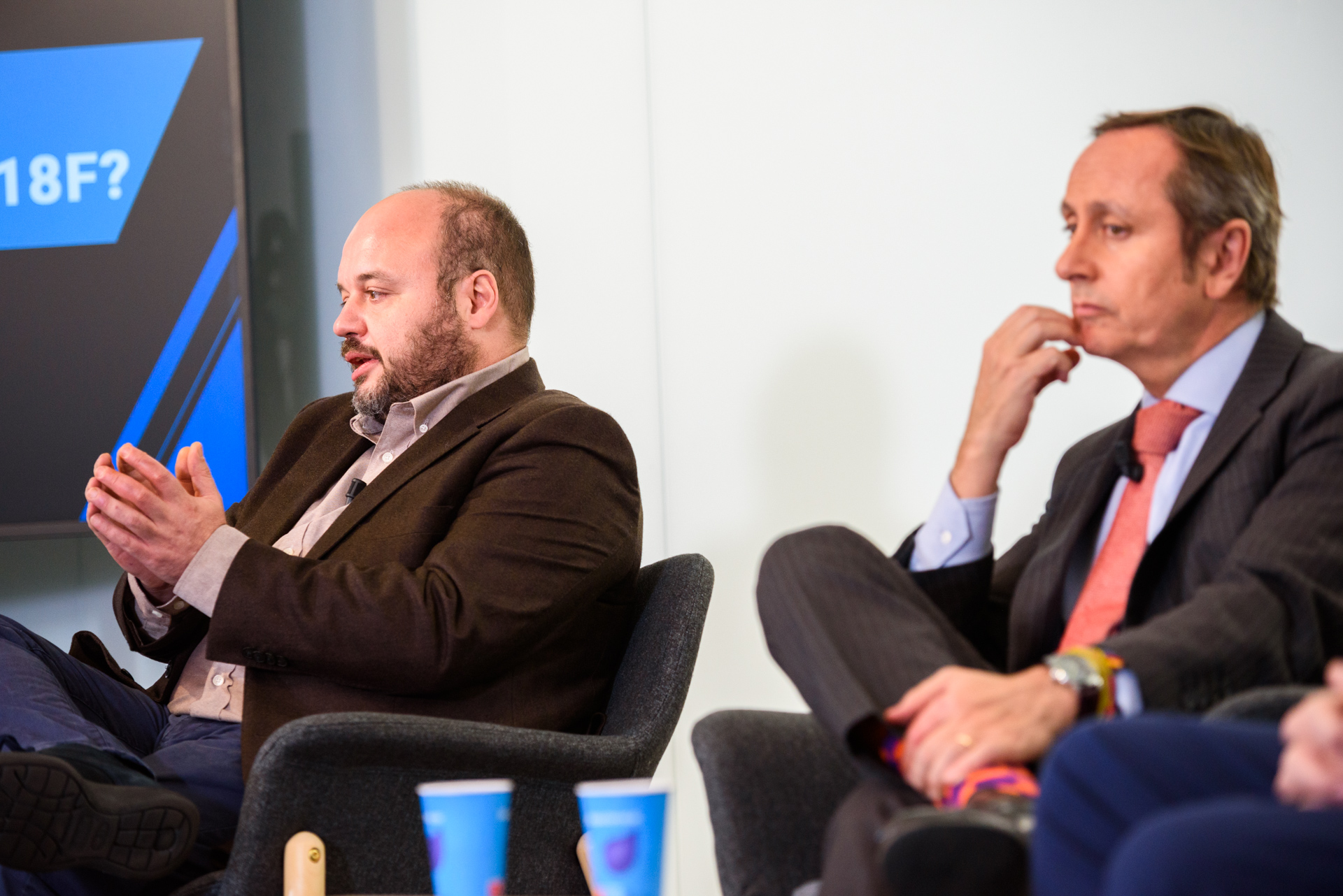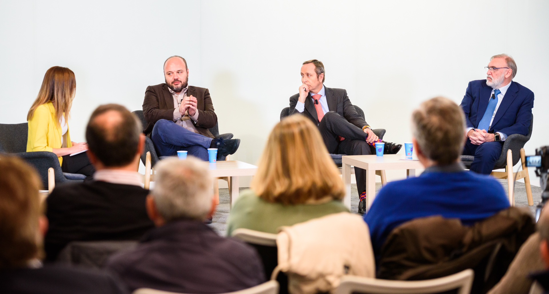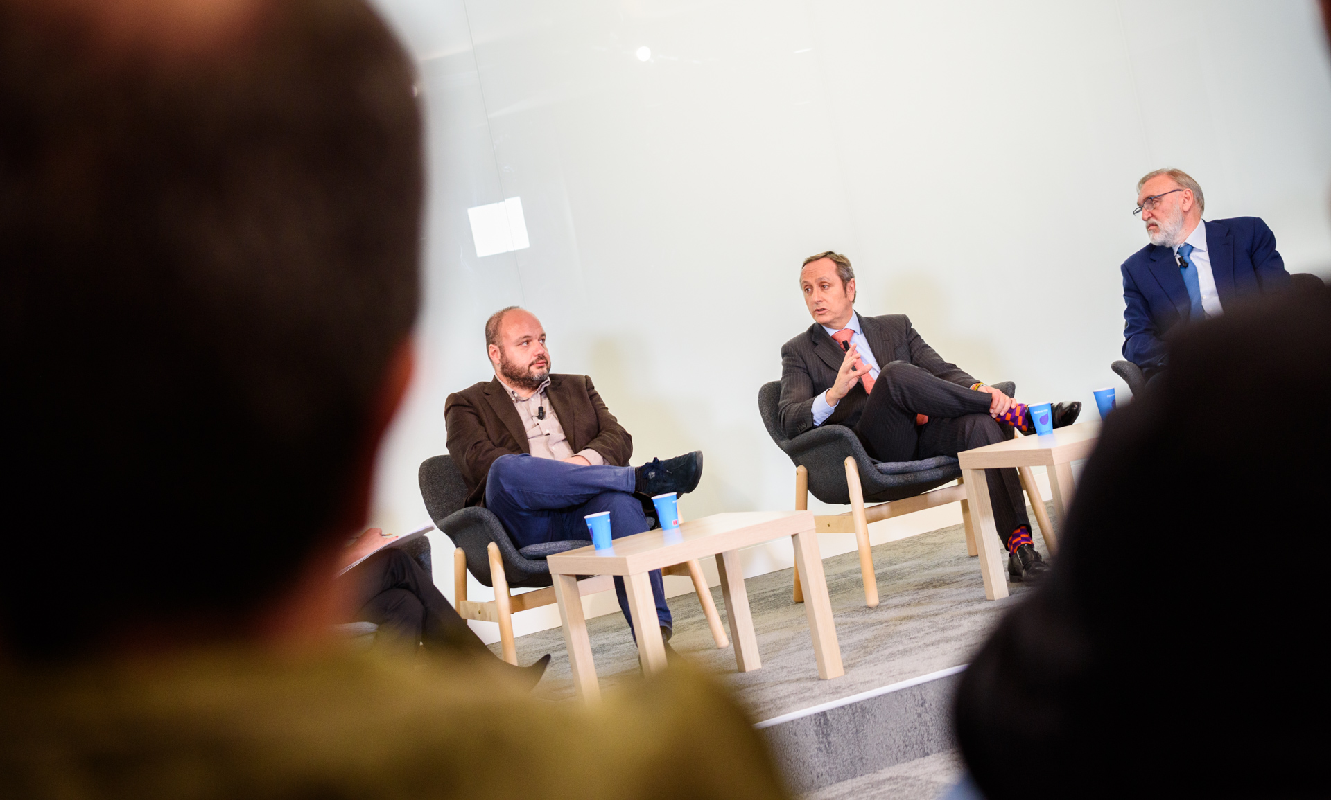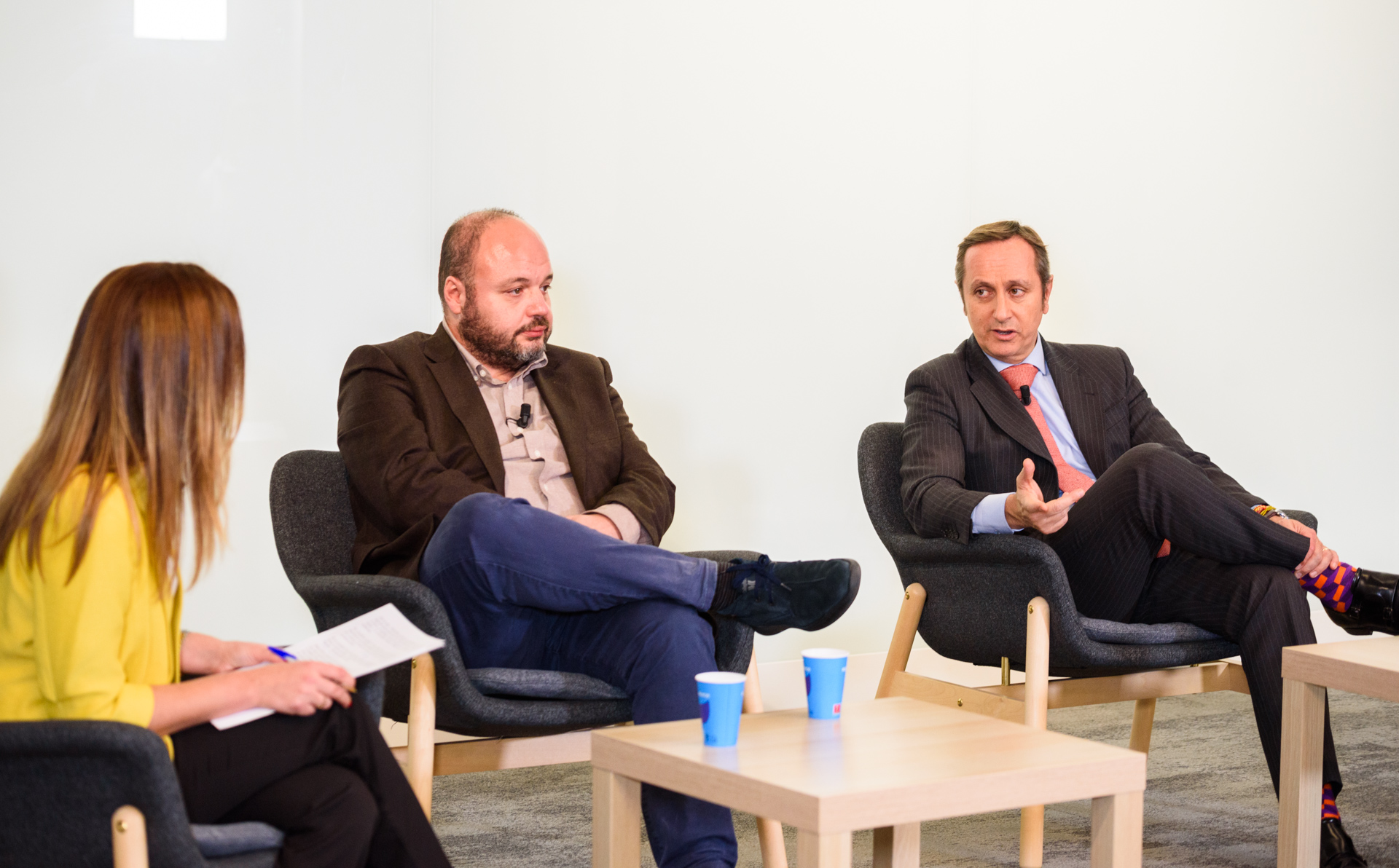 Un momento durante el debate con Raúl Vilas, junto a Carlos Cuesta y el experto en demoscopia Arcadio Mateo.