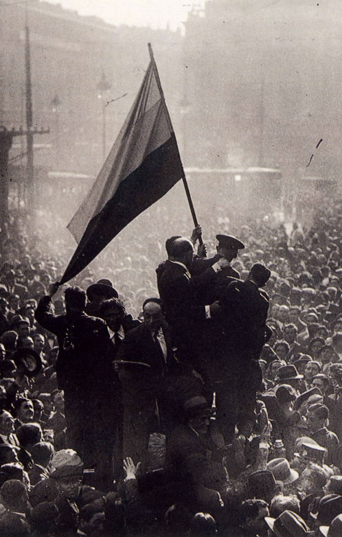 En cuanto las masas republicanas se desparramaron por la Puerta del Sol y sus alrededores en la tarde del 14 de abril, apareció entre ellas un joven militar de uniforme ondeando una enorme bandera tricolor, que entonces era sólo la del partido republicano y en unos días se convertiría por obra de un decreto-ley en la nueva bandera oficial de España. Se trataba del teniente Pedro Mohíno, cuya figura es fácil de reconocer porque aparece en numerosas fotografías de ese día.