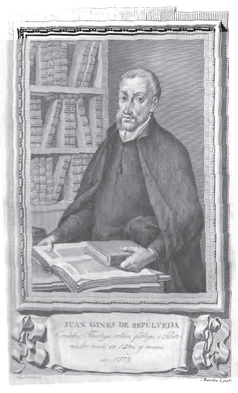 Y siendo esto así, bien puedes comprender, ¡oh Leopoldo!, si es que conoces las costumbres y naturaleza de una y otra gente, que con perfecto derecho los españoles imperan sobre estos bárbaros del Nuevo Mundo e islas adyacentes, los cuales en prudencia, ingenio, virtud y humanidad son tan inferiores a los españoles como los niños a los adultos y las mujeres a los varones, habiendo entre ellos tanta diferencia como la que va de gentes fieras y crueles a gentes clementísimas, de los prodigiosamente intemperantes a los continentes y templados, y estoy por decir que de monos a hombres.