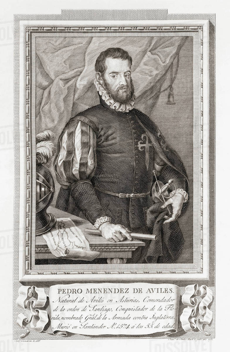 El 28 de agosto de 1565, la armada avistó la costa de Florida, ante la que se declamó, con las rodillas hincadas sobre las cubiertas de las naves, un Te Deum laudamus. Días más tarde, el 8 de septiembre, el Adelantado tomó posesión de la tierra y dio de comer a los indios que allí halló. Por ellos conoció la localización del enclave francés, si bien nada pudo averiguar acerca de su hijo Juan, que años atrás había desaparecido en el canal de Bahamas. La península, en la que Juan Ponce de León trató de hallar la Fuente de la Eterna Juventud, capaz de "tornar mancebos a los hombres viejos", había sido objeto de una expedición encabezada por el llamado Alférez de la Fe, el lascasiano fray Luis Cáncer O. P., que pretendía dar continuidad a la evangelización de Guatemala, en la que participó. Obtenido el permiso para fundar misiones, murió a manos de indios cerca de Tampa.