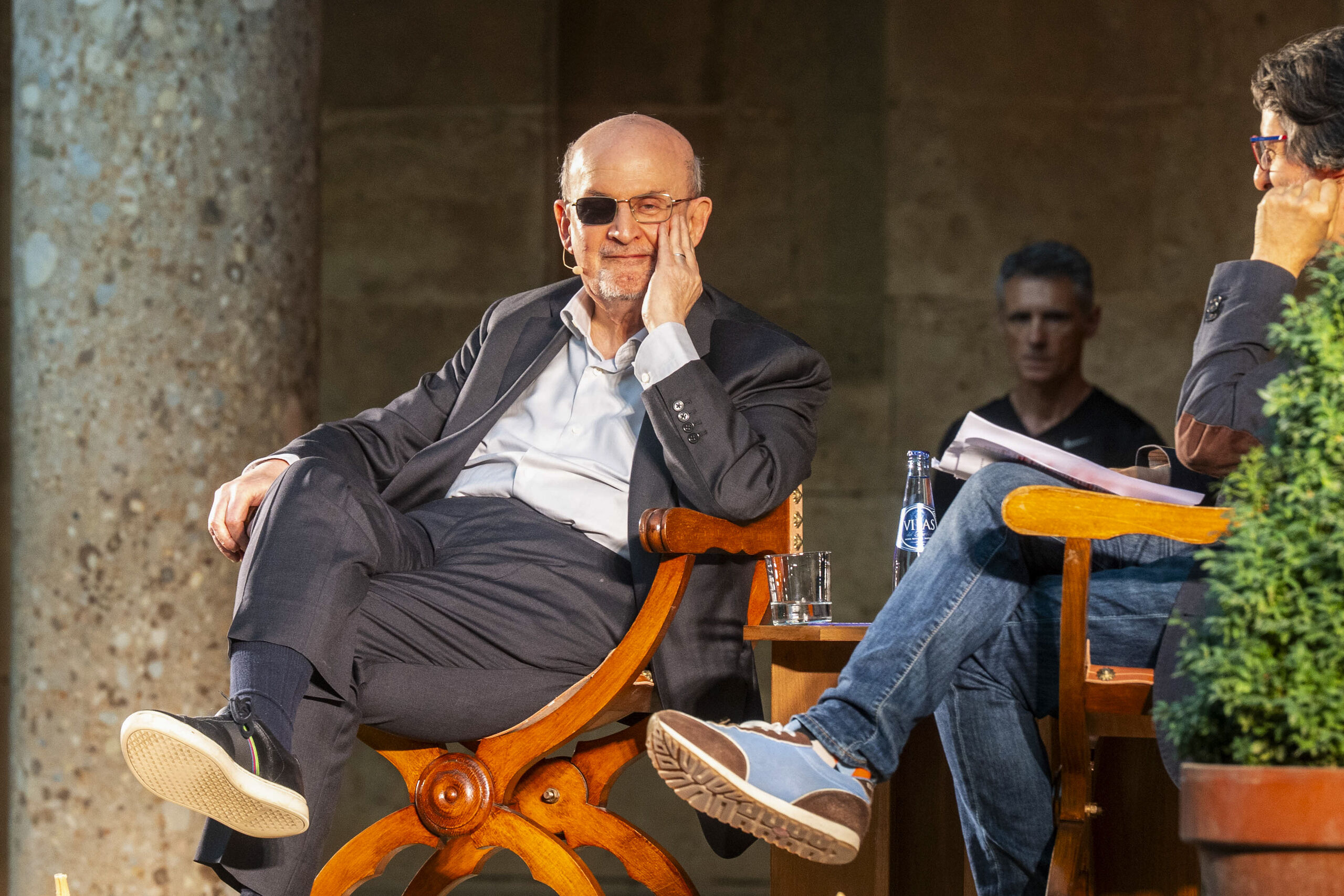 Para poder ver y escuchar en directo a Salman Rushdie debo pasar un control de seguridad donde echan un vistazo a mi mochila –tamaño XL con varios compartimentos para guardar el portátil, libretas, cosas así– y, tras abrir las piernas y alzar los brazos, ser procesado por un detector de metales que entra en estado de pánico a la altura de mi pierna izquierda. Le advierto al amable guardia de seguridad que llevo clavos debajo de las cicatrices y me responde que era lo que se imaginaba. Me pregunto si pasó algo semejante cuando el 18 de septiembre de 2021 un tipo consiguió colar una bolsa llena de cuchillos a un acto literario parecido en Estados Unidos cuando Rushdie terminó con quince puñaladas que casi le costaron la vida y lo dejaron tuerto.