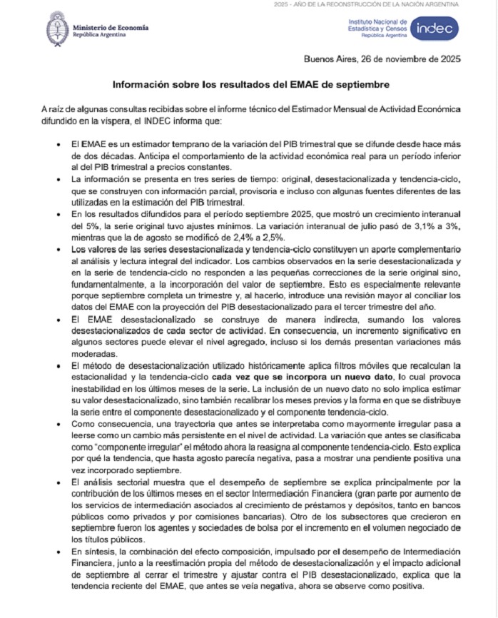 Por caso, recientemente el organismo argentino para las estadísticas oficiales, el INDEC, recalculó, en base a sus criterios, el EMAE (anticipo del PIB) y así logró que fuera positivo aun cuando todos los privados preveían una recesión, y al mismo tiempo que publicaba que el consumo masivo no deja de caer. Difícil de entender el optimismo oficialista, al punto que se vio obligado a aclarar su recálculo: