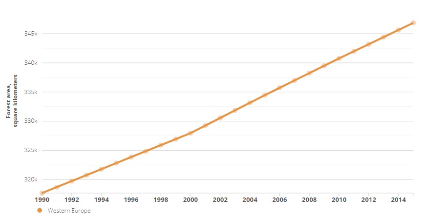 Y lo mismo sucede con Europa Occidental, donde ha aumentado de 327.000 a casi 350.000 kilómetros cuadrados.