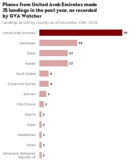 Quizá por ser una federación de siete monarquías absolutas, cada una con su emir y su familia real, Emiratos Árabes Unidos es el país que encabeza el ránking de visitas a Ginebra de la GDA.