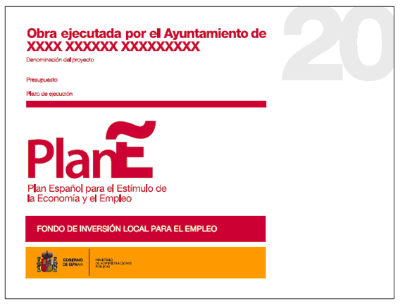 Las normas reglamentarias de desarrollo del decreto-ley han especificado un poco más esta obligación estableciendo el diseño de las vallas publicitarias de las obras y sus dimensiones (v. Gráfico 5). Por tanto, parece que la finalidad del FIEL responde principalmente a una pretensión publicitaria del Gobierno que se extiende por la práctica totalidad de los municipios de España. A favor de esta interpretación puede aducirse el hecho de que la leyenda mencionada no recoge el nombre de la institución creada por el decreto-ley –es decir, el Fondo Estatal de Inversión Local–, sino que es más bien un reclamo propagandístico alusivo al empleo.