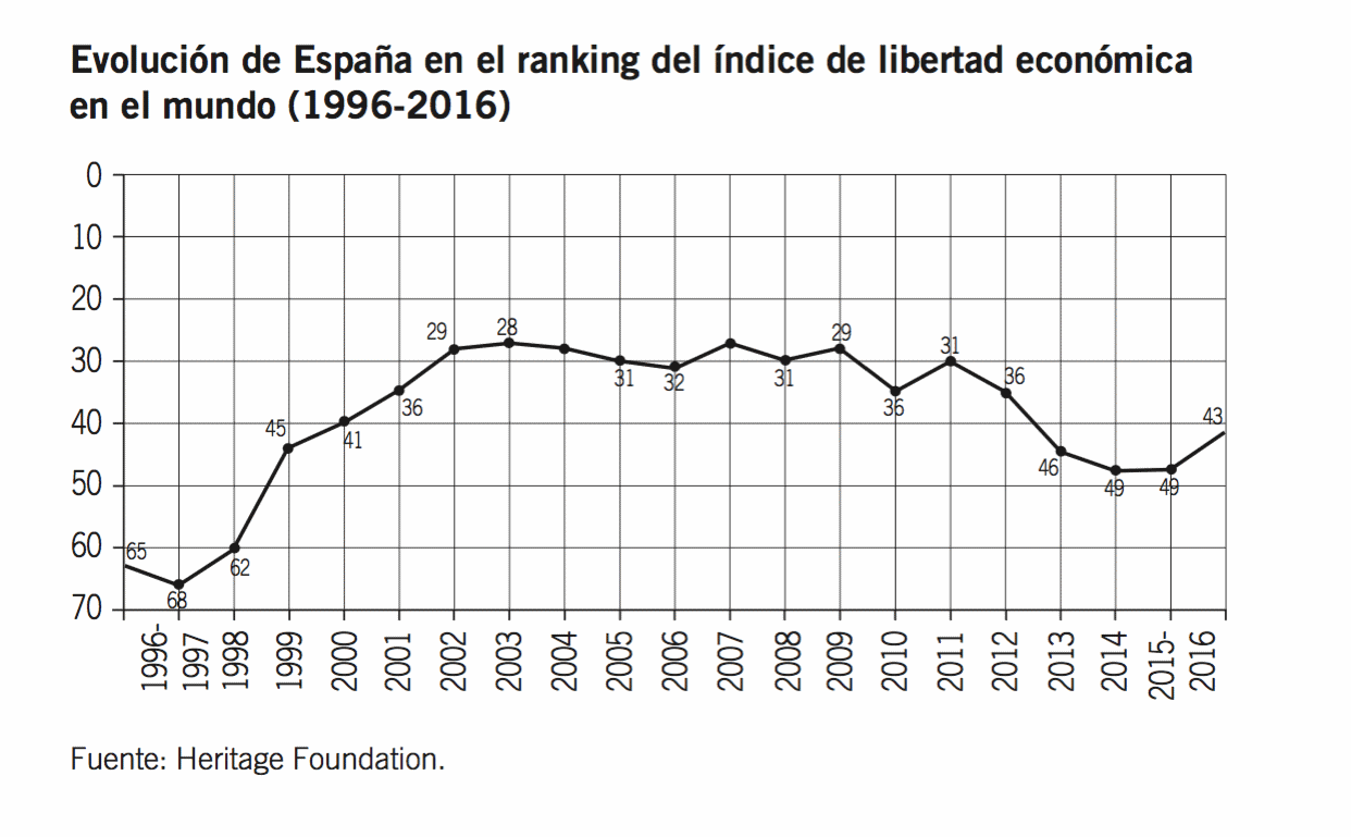 La clasificación obtenida por España en el Índice de Libertad Económica en el Mundo mejoró notablemente entre los años 1996 y 2004. Nuestro país pasó del puesto 65 al número 29. He aquí los ingredientes centrales que hicieron posible este salto adelante.