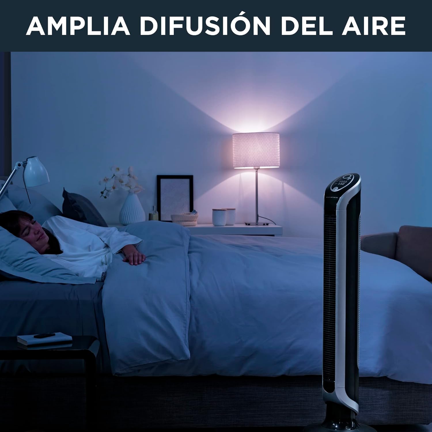 Es otra gran opción que debes tener en consideración, en especial porque podrás tener una sensación de aire fresco al instante, siempre con el máximo silencio y confort. Este ventilador ofrece un mando a distancia, y una pantalla LCD para que puedas programarlo más fácilmente en cualquiera de sus 3 modos de generación de aire.