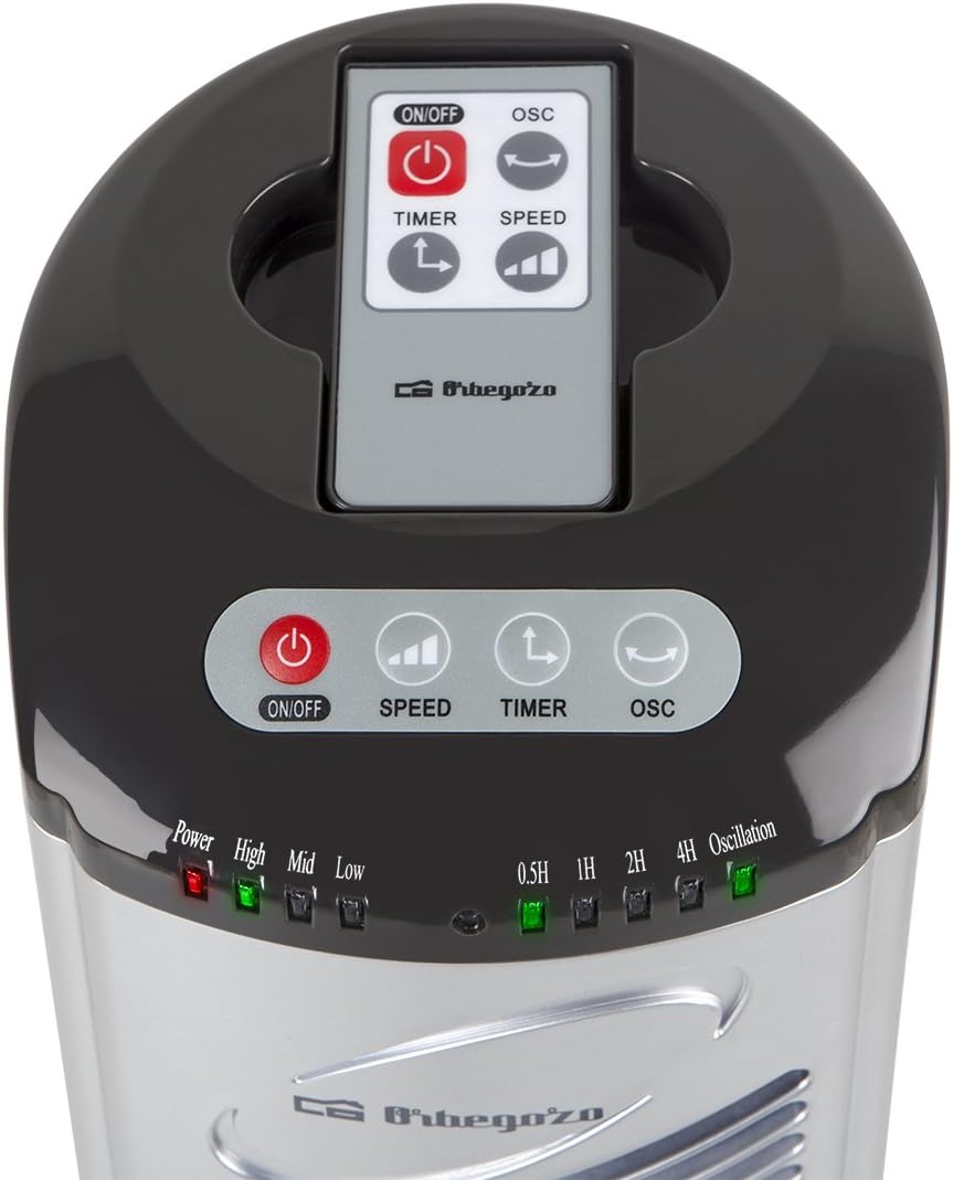 Cuenta con 3 velocidades diferentes que permiten amoldarse al nivel de calor existente, y con su ajuste electrónico automático, se adaptará por completo dependiendo de la temperatura ambiente. Con su práctico mando a distancia podrás controlar todas sus funciones cómodamente, y cuenta con un temporizador digital de hasta 8 horas. También ofrece un práctico recogedor de cable, para que sea más fácil almacenarlo.
