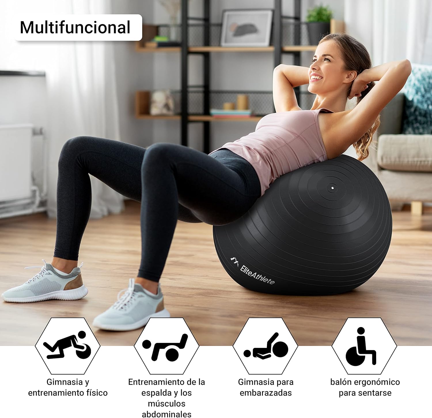 Optimiza tu rendimiento y bienestar con la pelota de pilates EliteAthlete. Diseñada con materiales premium y un innovador sistema antiexplosión, esta fitball es la compañera perfecta para yoga, pilates, ejercicios de core, entrenamiento funcional e incluso como asiento ergonómico en la oficina.