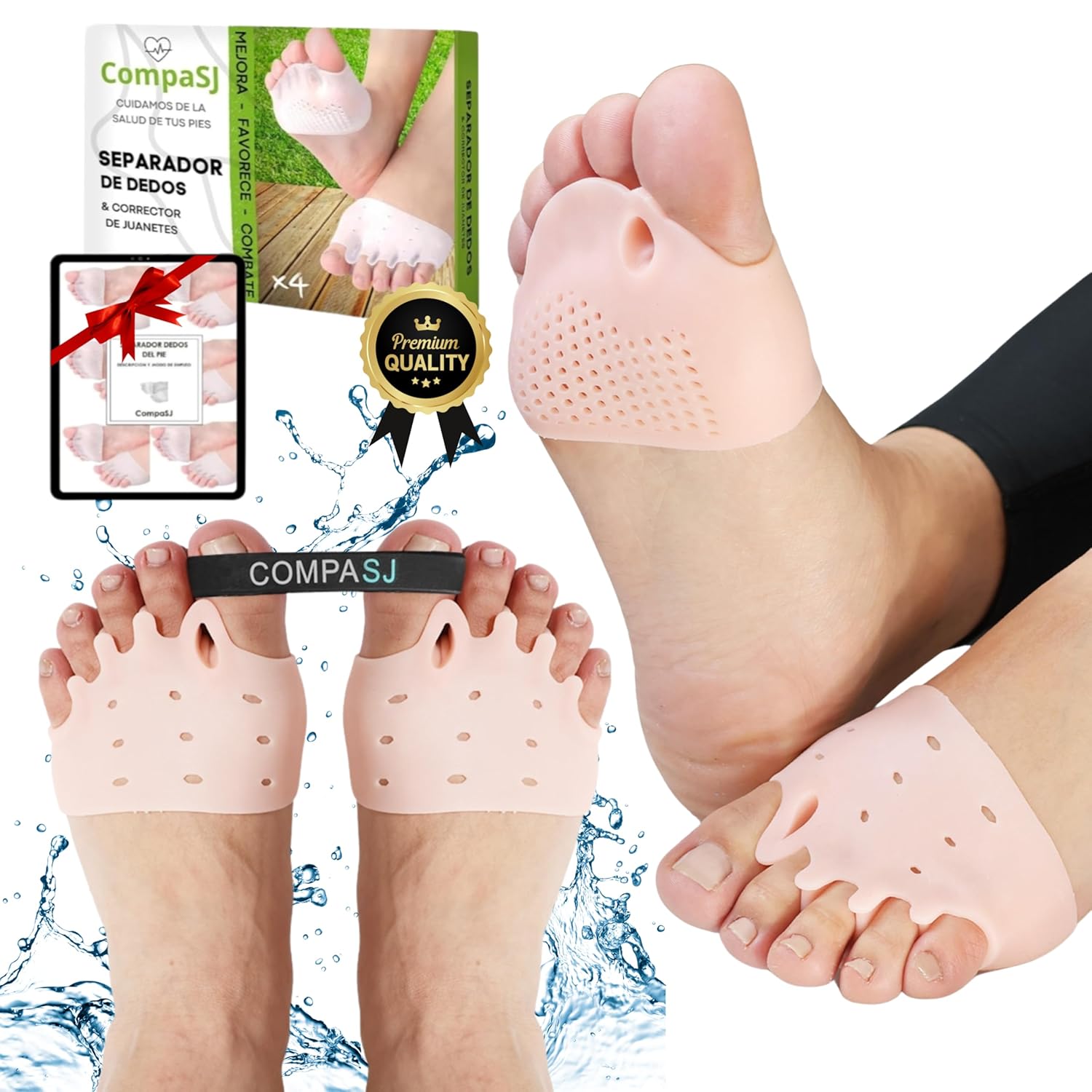 Los dedos de los pies se mantendrán separados, evitando así que se fusionen con los otros dedos. Permite mantener siempre la alineación adecuada, evitando el roce y aliviando la presión en los mismos. Permiten aliviar en gran medida el dolor, y evita los dedos superpuestos que pueden terminar en ampollas o lesiones secundarias como el callo. Permite que los pies recuperen la forma anatómica para mantenerlo en la posición correcta durante todo el día.
