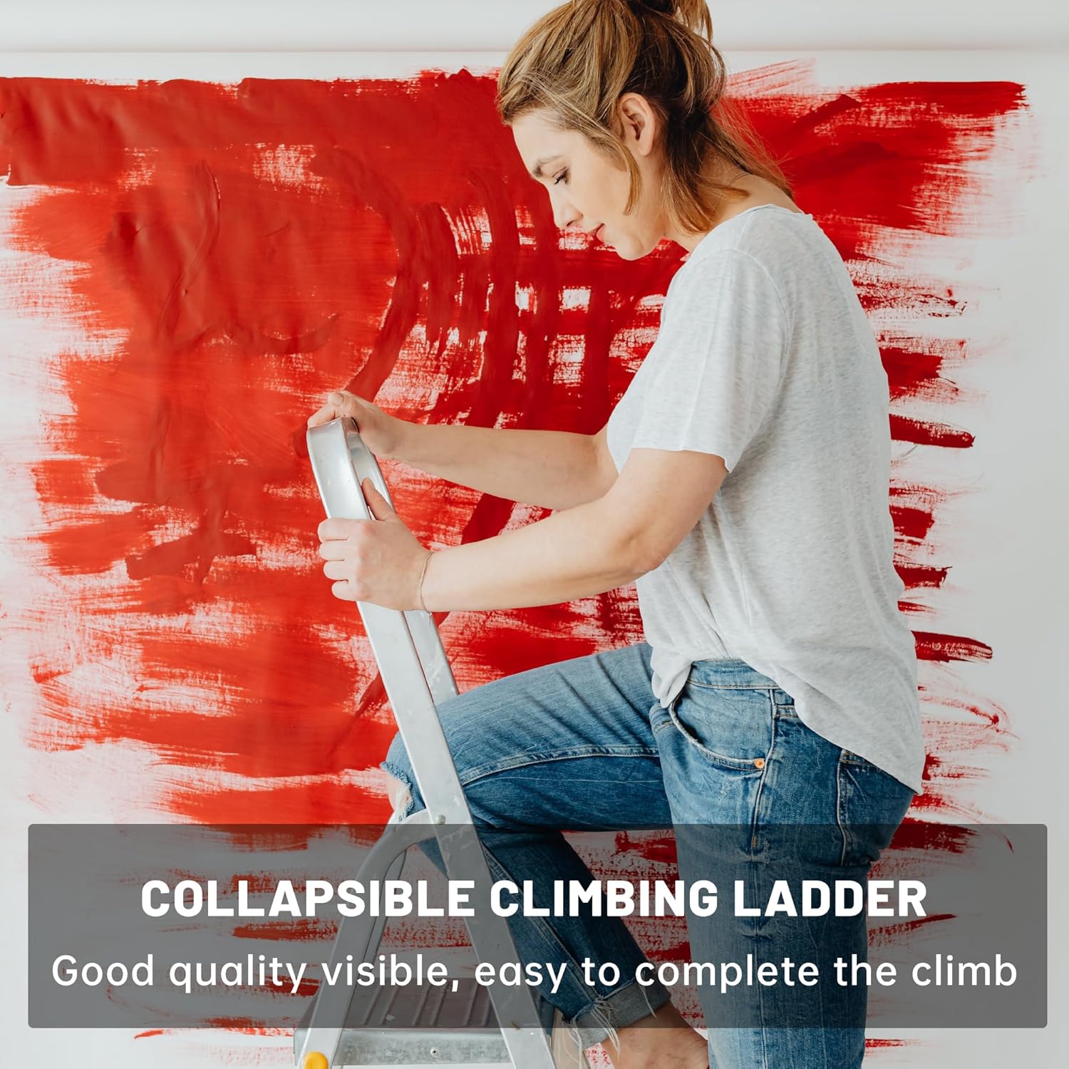 La estructura de esta escalera está fabricada en metal reforzado de alta calidad, lo que garantiza una capacidad de carga de hasta 150 kg. A pesar de su resistencia, su peso total es de solo 5,5 kg, lo que la hace ligera y fácil de transportar.
