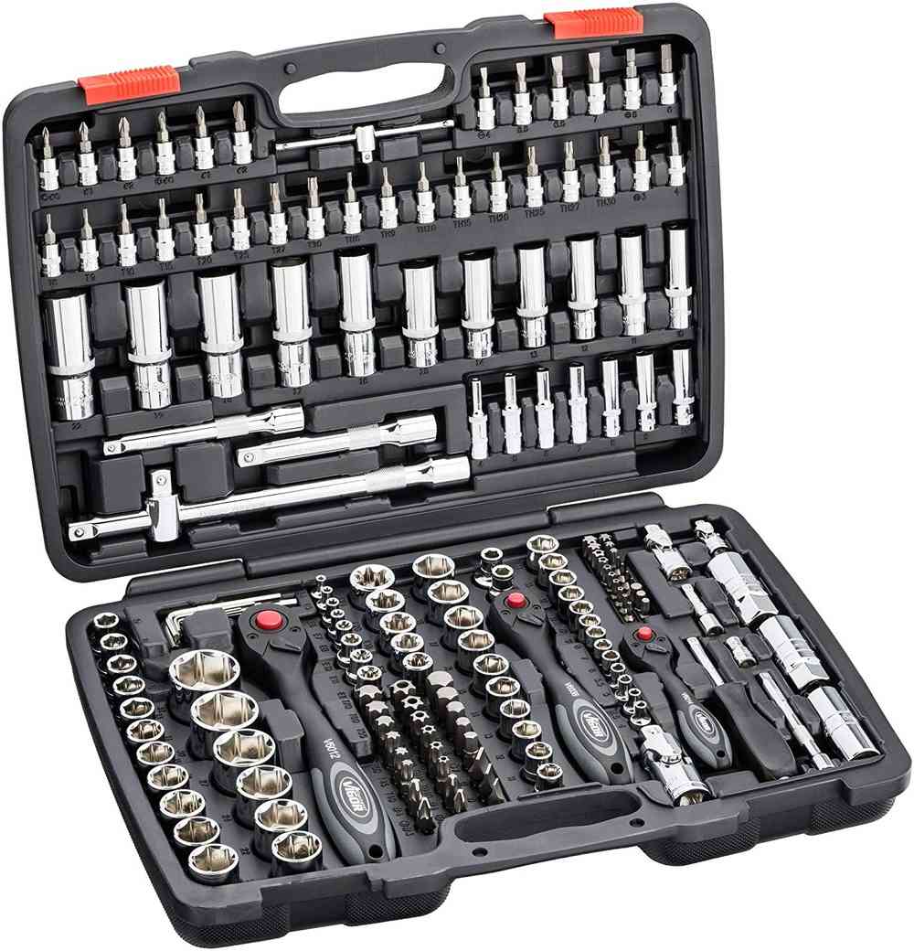 Este maletín incluye un total de 172 piezas, con diferentes vasos, puntas y con una carraca de la más alta calidad. En esta caja te encontrarás con todas las herramientas que necesitarás para todas las tareas de bricolaje del hogar, e incluso para tareas de nivel profesional. Además, esta caja tiene un tamaño que es bastante compacto, pero es bastante completa con todas las herramientas que necesitas.