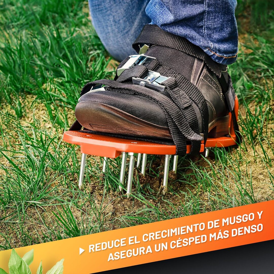 Un césped sano y verde no depende únicamente de regar o abonar, sino de que la tierra pueda respirar correctamente. Si tu jardín tiene el suelo compactado, el agua y los nutrientes no llegan a las raíces y la hierba pierde fuerza. La solución está en los Zapatos Escarificador de Césped HSLighting, unas sandalias con púas metálicas que convierten un simple paseo en la clave para un césped más fuerte, denso y saludable.