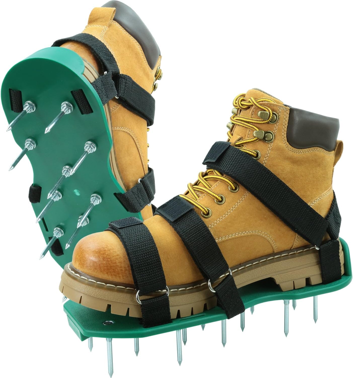 Los zapatos aireadores son sandalias con clavos de acero inoxidable que se ajustan fácilmente sobre tus propios zapatos mediante correas de velcro o hebillas. Están diseñados para caminar sobre el césped y, con cada paso, perforar el suelo sin esfuerzo, facilitando la oxigenación y mejorando la calidad del terreno.