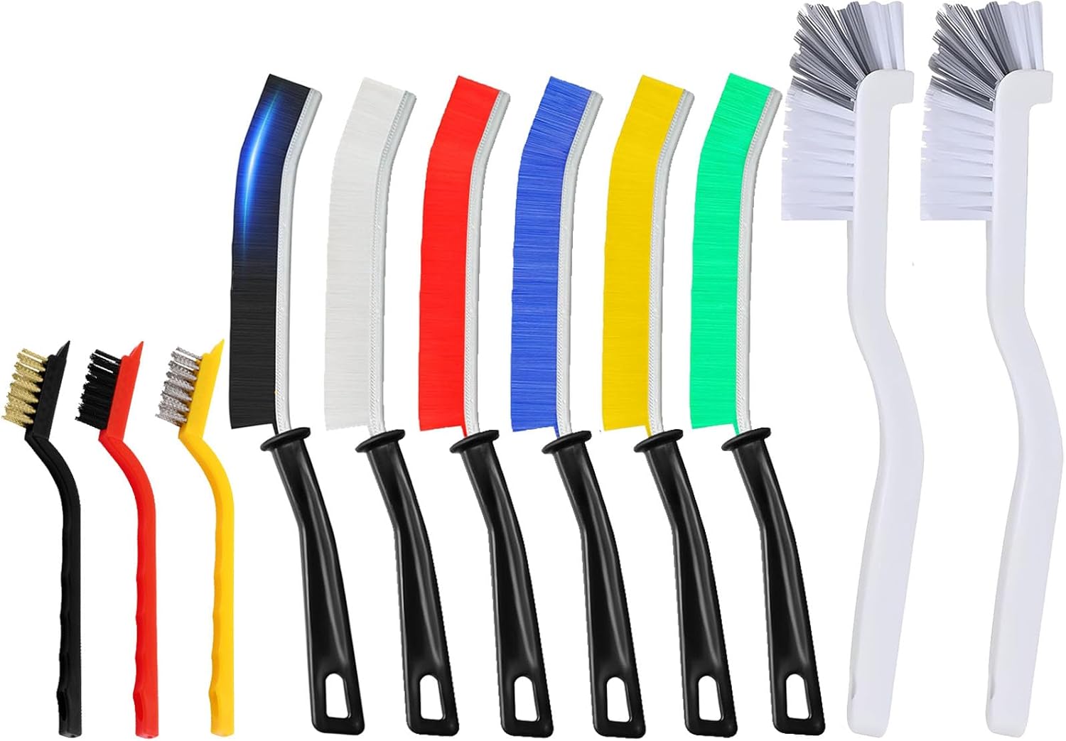 - Juego Completo de 11 Cepillos: Incluye 6 cepillos de limpieza de grietas de colores vibrantes (negro, blanco, rojo, azul, amarillo, verde), 3 cepillos de alambre (latón, acero inoxidable y nailon) y 2 cepillos pequeños de cocina. ¡Todo lo que necesitas para una limpieza a fondo!