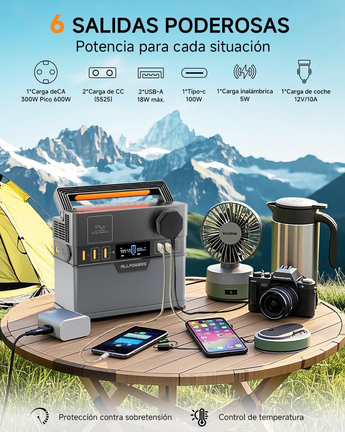 La estación de energía portátil ALLPOWERS S300 Plus combina una batería de litio de 288 Wh con un inversor de 300 W (pico 600 W), puertos ultra rápidas y recarga MPPT en solo 1,5 horas, todo en un chasis de 3,4 kg. Ideal para quienes necesitan energía limpia y silenciosa en el hogar, la caravana o el campo.