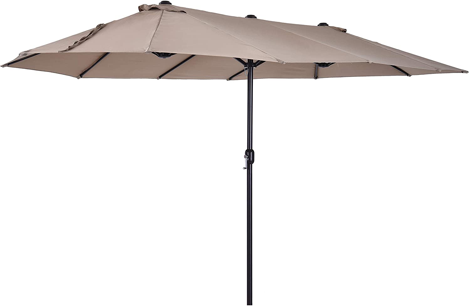 Es un modelo bastante grande, por lo que es ideal para terrazas de gran tamaño y jardines, ya que tiene una longitud de 4.6 metros y una anchura de 2.7 metros. Esto proporcionará una gran sombra para tu terraza, y además tiene una práctica manivela para que la puedas abrir fácilmente o cerrarla cuando no la estés utilizando. Esta sombrilla no trae una base incluida por lo que tendrás que comprarla por separado o instalarla en una base que ya tengas en tu terraza.