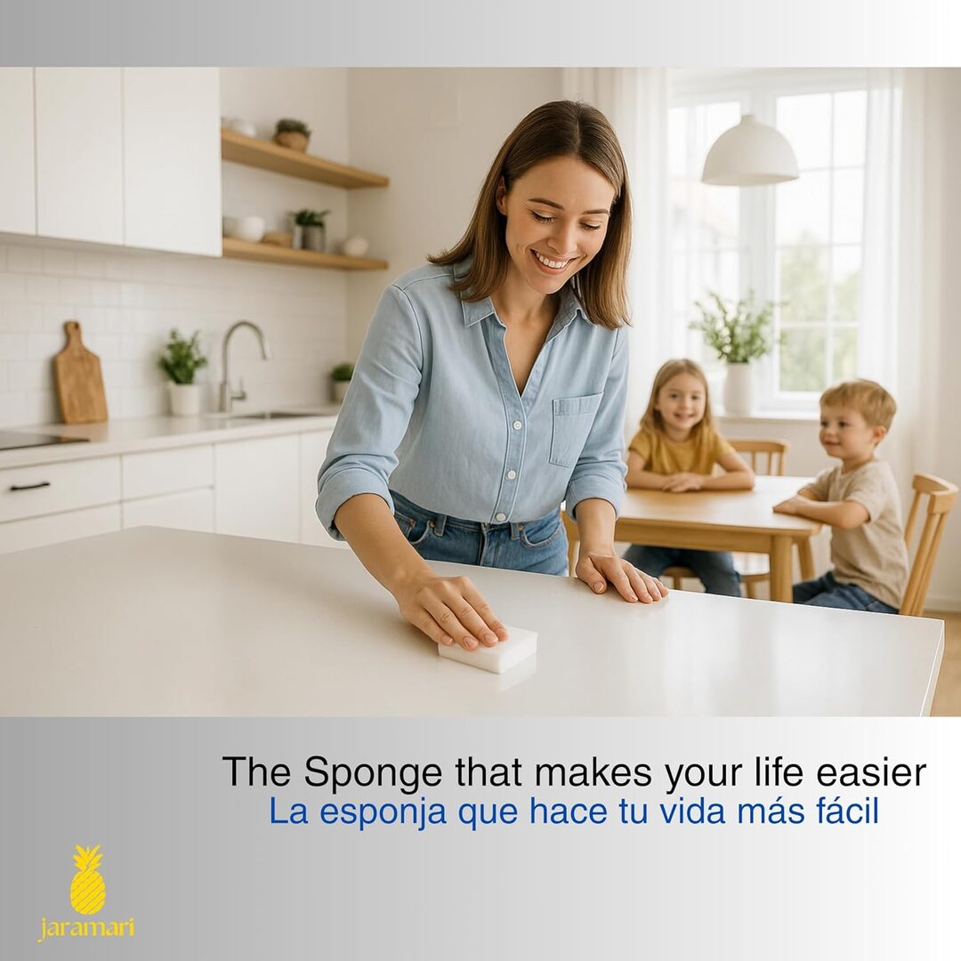 Solo humedece ligeramente la esponja, frótala suavemente sobre la superficie y observa cómo desaparecen las manchas. Es una forma segura, rápida y ecológica de mantener tu hogar impecable. -