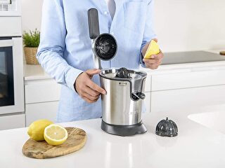 Gracias a su sistema inteligente anti-pulpa, el exprimidor filtra automáticamente gran parte de la pulpa hacia el tamiz, dejando un zumo perfecto.