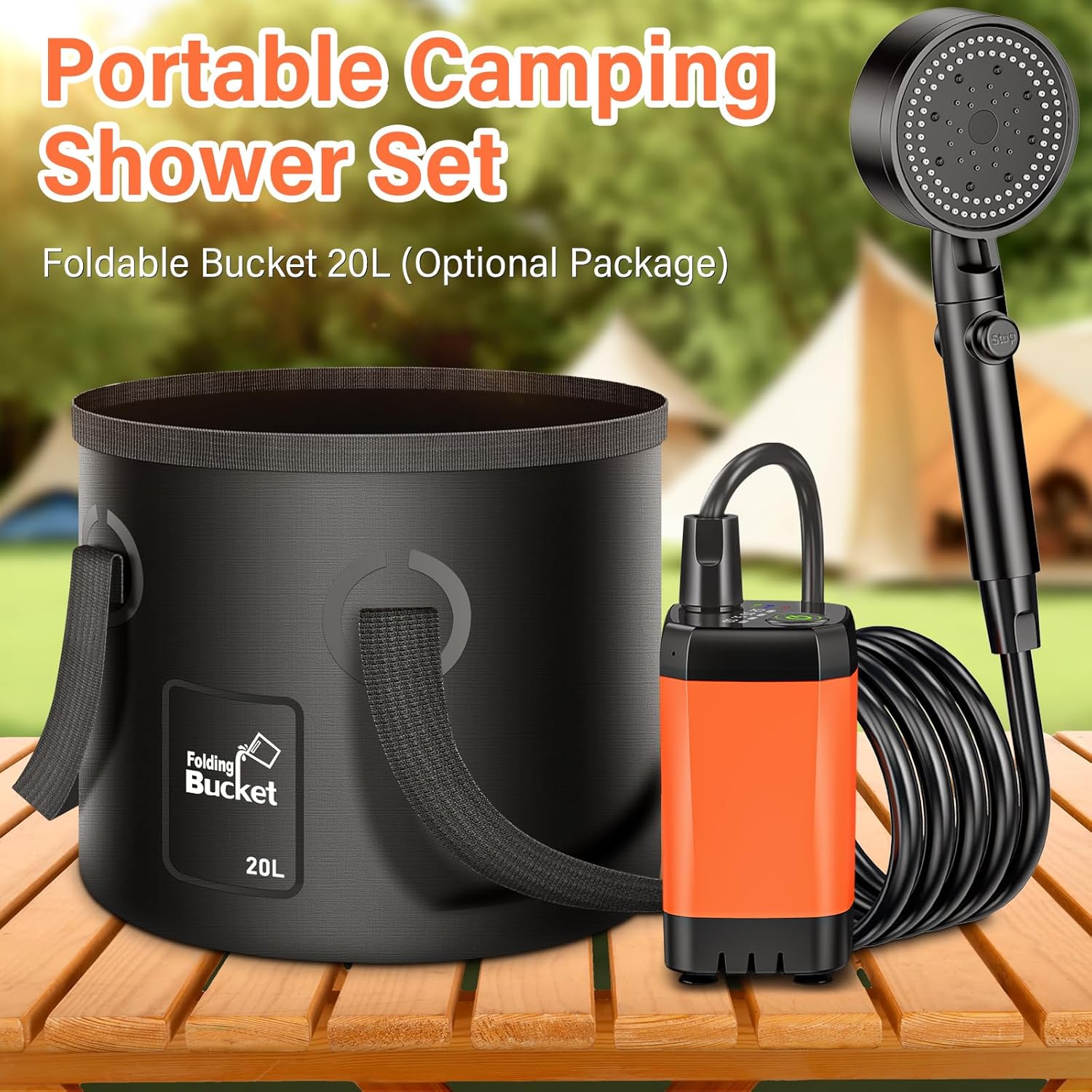 Equipada con una pantalla LED inteligente, podrás controlar en tiempo real el nivel de batería y seleccionar entre tres niveles de flujo de agua según tus necesidades. Su caudal de 5 litros por minuto y el botón giratorio para ajustar el patrón de flujo permiten un baño o enjuague rápido y eficiente. Además, incluye una cubeta plegable de 20L con ventosas inferiores, que se adhiere firmemente a superficies lisas, asegurando estabilidad y comodidad durante el uso.