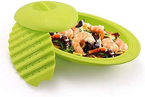 Se trata de un estuche de vapor de buena calidad, el cual está disponible tanto con bandeja como sin bandeja, para que puedas elegir el que mejor se ajuste a tus necesidades. Permite cocinar tus alimentos sin que pierdan el sabor o los nutrientes en el microondas o en el horno convencional. Es energéticamente eficiente, porque permite que se pueda ahorrar hasta un 80% de la energía que utiliza el horno.