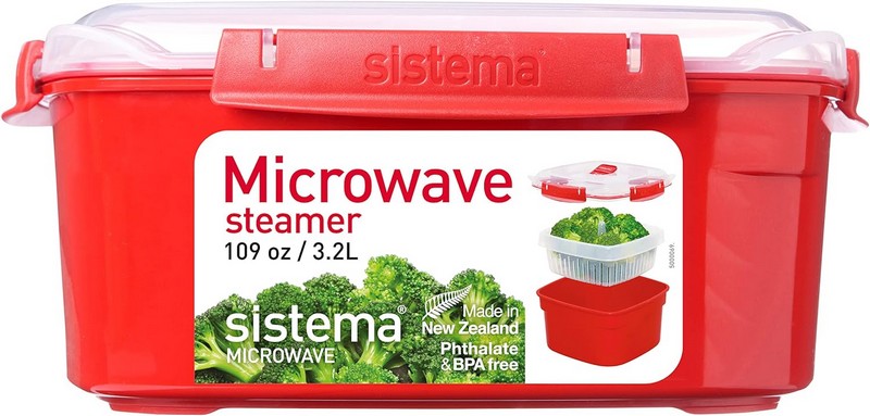 Se trata de un estuche de vapor para microondas que es ideal para cocinar de forma saludable, y así tener una comida baja en grasas y sin condimentos. Simplemente se debe agregar un poco de agua en el fondo del recipiente principal para cocinar al vapor cualquier tipo de alimentos. Es muy eficiente, porque tus platos quedarán listos en 15 a 20 minutos a una potencia de 800W en el microondas.