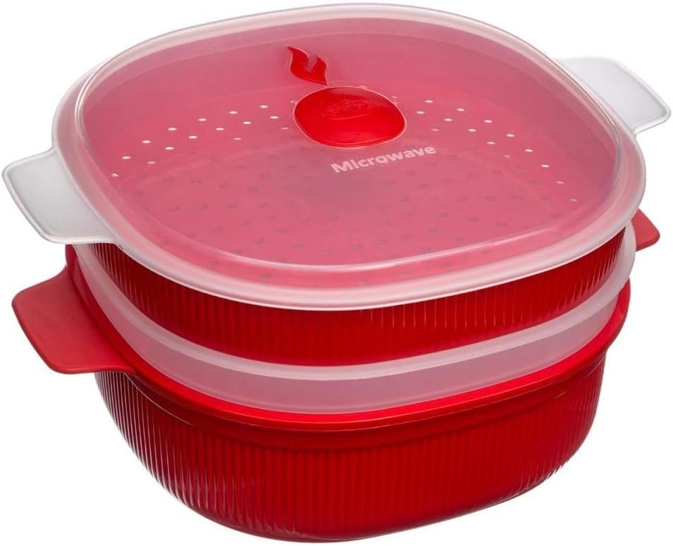 Es un modelo que se destaca por tener una muy buena relación calidad-precio, y que permite una cocción al vapor completamente saludable ahorrando tiempo. Es fácil de retirar del microondas incluso cuando está caliente, sin que te vayas a quemar. Tiene una forma cuadrada que permite aprovechar al máximo el espacio para cocinar alimentos sin tener que partirlos.