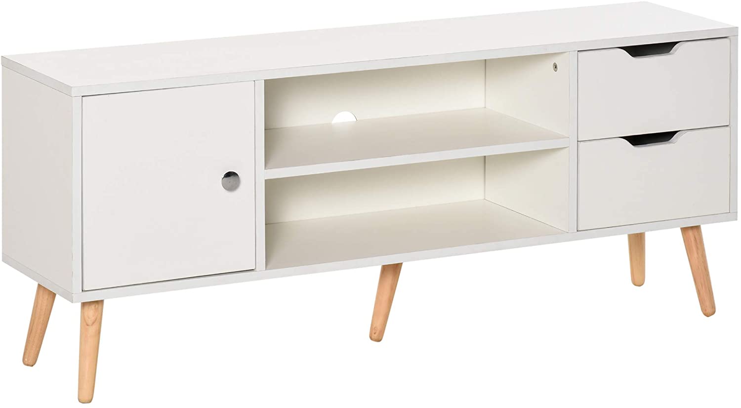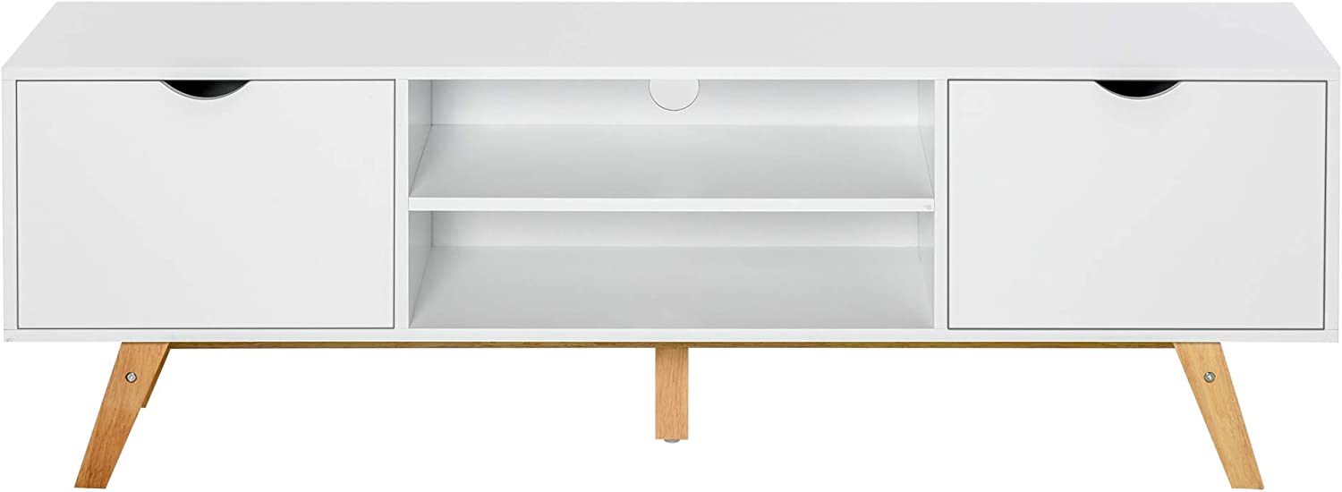 Está fabricado en un tablero de partículas de MDF, y sus patas son en madera maciza, lo que lo hace perfecto para el uso diario. Cuenta con un estilo nórdico que es funcional por su espacio y le aportará un toque decorativo y luminoso al salón. Cuenta con orificios pasacables, para que puedas mantener los cables de tus dispositivos multimedia completamente ordenados, y está fabricado para soportar un peso total de hasta 80KG.