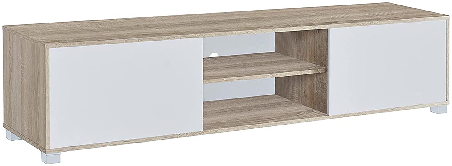 Esta es una mesa de TV que cuenta con un diseño que es muy moderno y que cuenta con un estilo nórdico para cualquier hogar y medida de TV. Además, cuenta con dos espacios para aparatos electrónicos y un práctico pasacables para mantener el orden siempre que lo necesites. Además, cuenta con dos espacios de almacenamiento con puertas lo que te permitirá tener un gran espacio de almacenamiento.