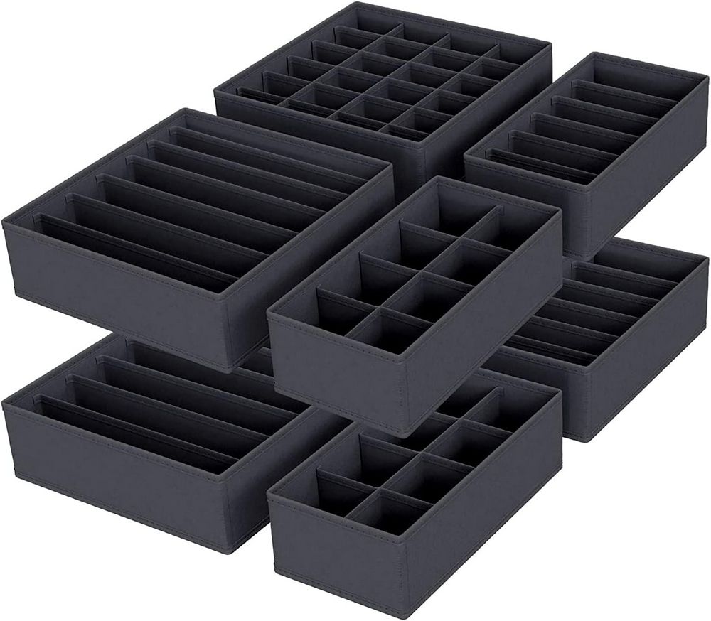 En este paquete se incluyen 5 cajas para sujetadores, 6 cajas para bragas, 8 cajas para corbatas y 24 cajas para calcetines. Cada uno de los organizadores están forrados con tela no tejida y están reforzados con cartón para mantener su forma y que siempre se mantenga en óptimas condiciones. Están disponibles en diferentes colores para que puedas elegir el que mejor se adapte a lo que estás buscando.