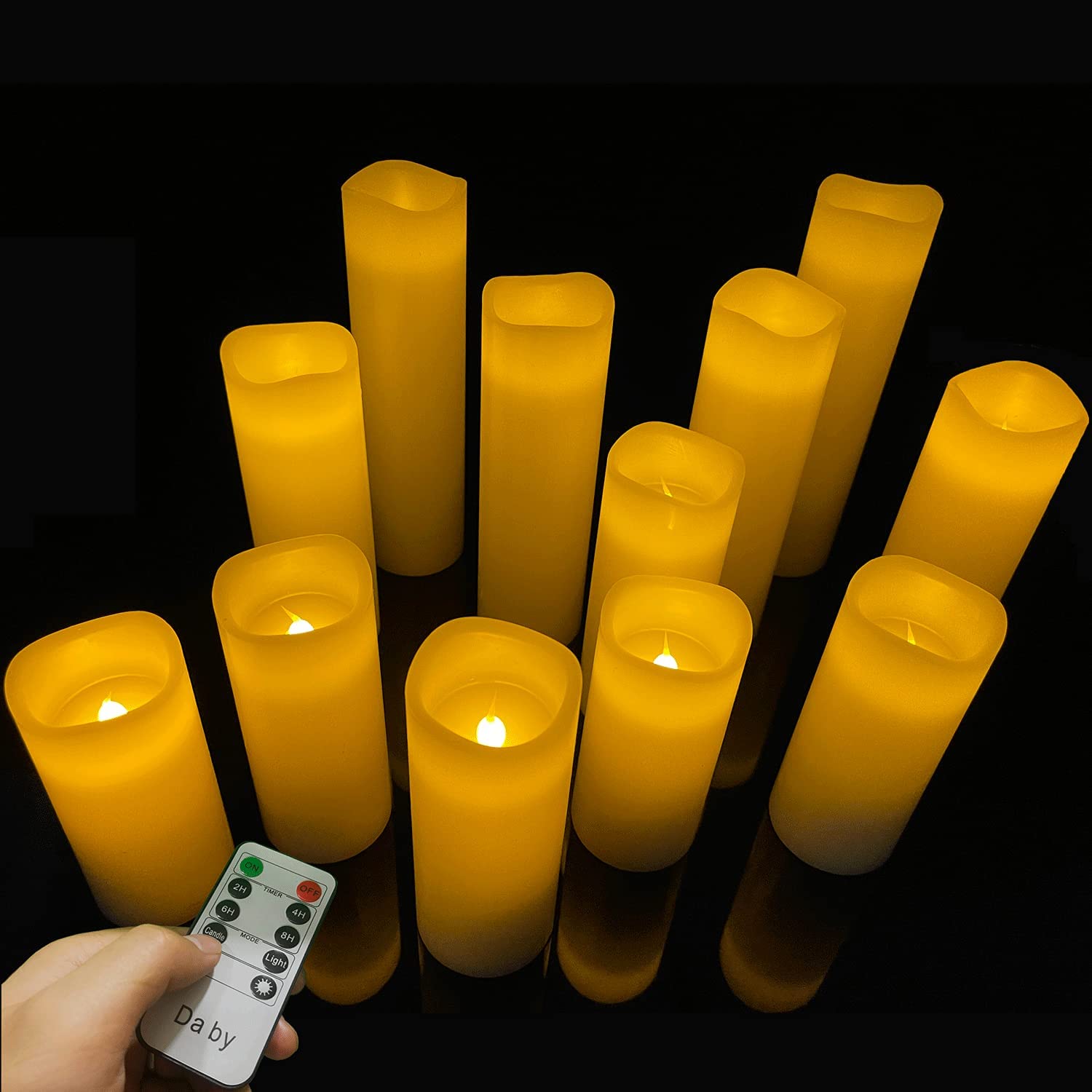 Este es un paquete de 9 velas sin llama de diferentes tamaños, para que puedas escoger el tamaño que mejor se ajuste a tus necesidades. Cuentan con un control remoto de 10 teclas, para que puedas controlarlas fácilmente. Incluyen un temporizador con el cual las velas se pueden encender a la misma hora todos los días, y puede permanecer encendida durante 2, 4, 6 u 8 horas, repitiendo el ciclo cada 24 horas para que no tengas que preocuparte por estar encendiéndolas a diario.