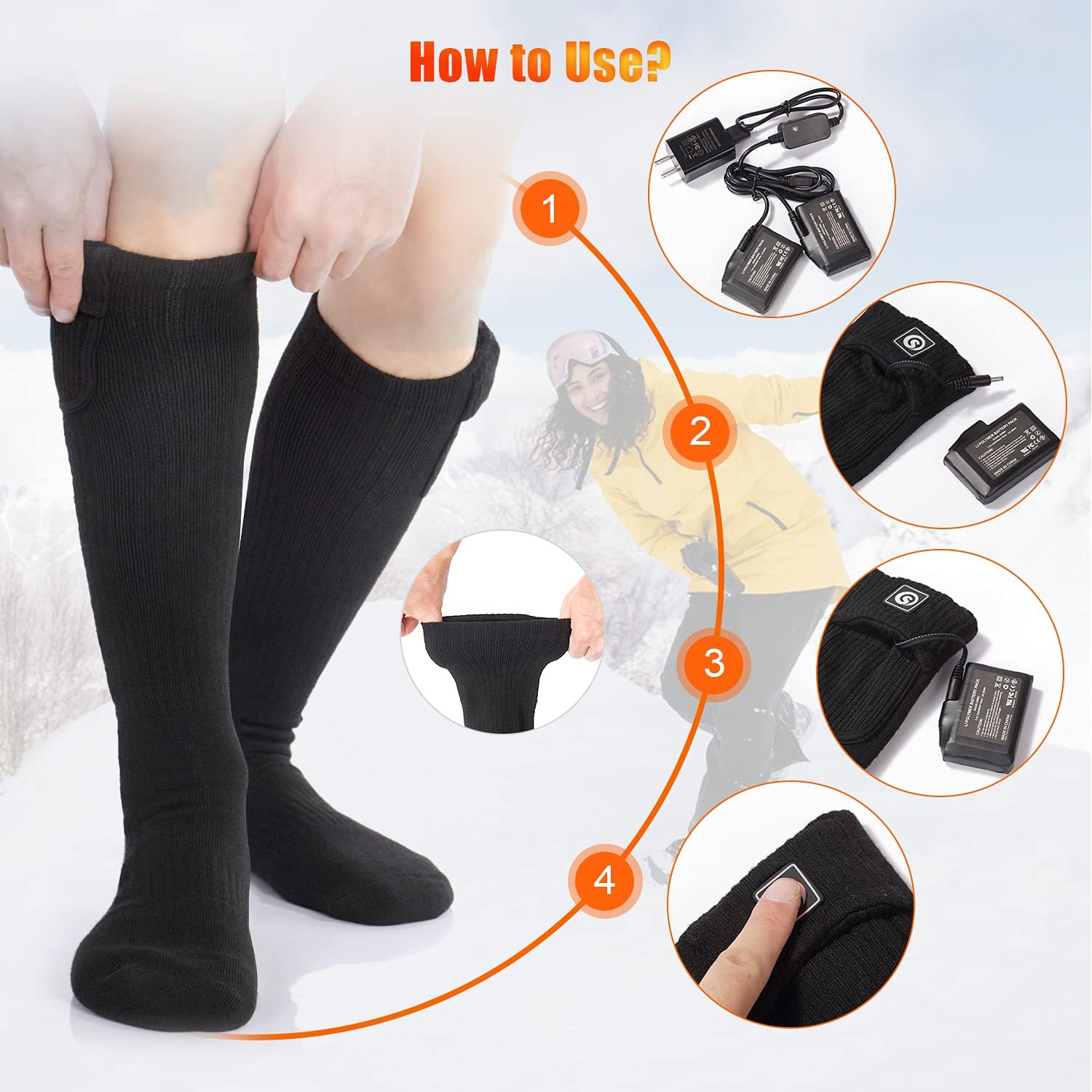 Tejido Cálido, Transpirable y Fácil de Limpiar: Fabricados con fibra de algodón y elastano de alta calidad, estos calcetines son absorbentes, transpirables, de secado rápido y elásticos. Se pueden lavar a mano o a máquina (recuerda retirar la batería antes del lavado y utilizar una bolsa de lavandería).