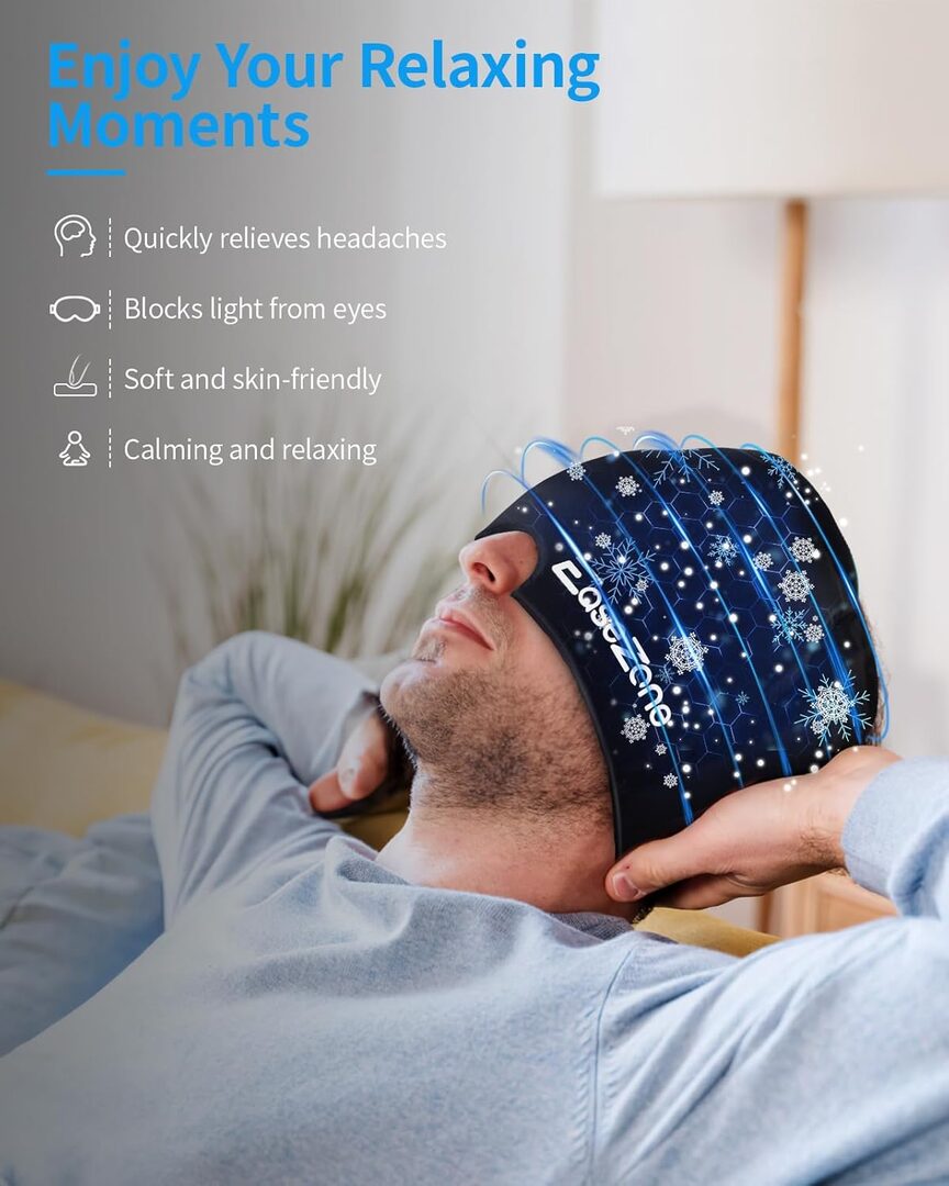 Este gorro ofrece una terapia de compresión en frío de 360°, proporcionando un mejor contacto con todas las áreas de la cabeza. Ayuda a aliviar la tensión, la inflamación, la sinusitis, los ojos hinchados, el estrés y la ansiedad. Es ideal para quienes sufren de dolores de cabeza, migrañas o tensión facial.
