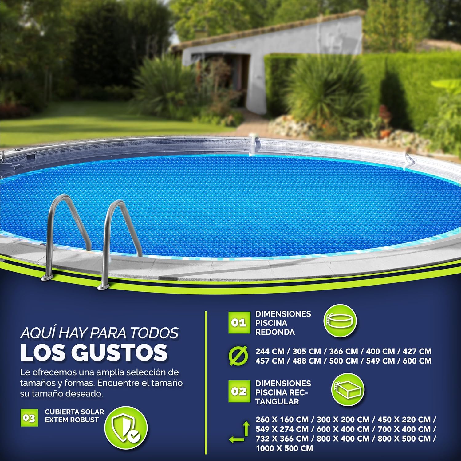 Usuarios valoran positivamente la facilidad para recortarla a medida y adaptarla a diferentes tamaños y formas de piscinas, así como su ligereza que facilita su manejo e instalación. También mencionan la buena relación calidad-precio y la durabilidad del material, que resiste bien el uso diario y las condiciones exteriores. En general, los clientes recomiendan este cobertor solar por su funcionalidad práctica y su aporte al ahorro energético.