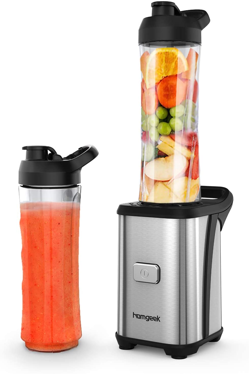 Se trata de una batidora de vaso que puedes llevar a todas partes y que te ofrece una gran potencia con su motor de 350W. tiene 4 cuchillas de acero inoxidable, y acelera hasta las 21.000 RPM, lo que permitirá que puedas conseguir unos batidos fantásticos sin esfuerzo. Incorpora 2 botellas de viaje libres de BPA y cada una con una capacidad de 600ml, lo que te permitirá llevar tus batidos a cualquier parte de una forma muy cómoda.