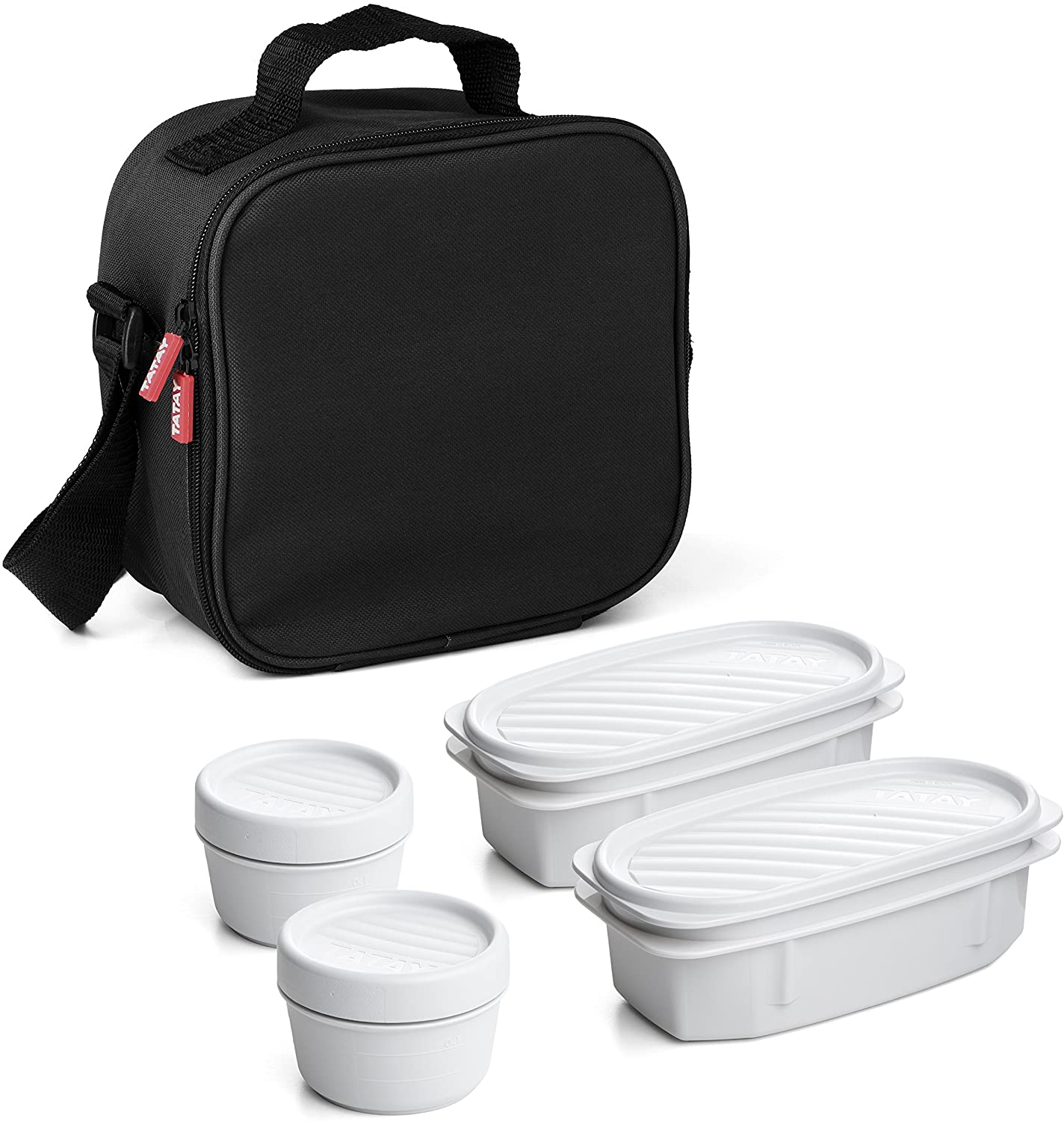 Viene con tuppers incluidos para que puedas llevar tu comida fácilmente, y son 2 ovalados de 0.5 litros y 2 redondos de 0.2 litros. Están elaborados por completo en plásticos libres de BPA, y se pueden usar tanto en el congelador como en el microondas sin ningún problema. Además, son aptos para el lavavajillas, lo que permitirá que puedas tener la máxima comodidad posible. El diseño práctico de la bolsa térmica incorpora una rejilla interior en la que puedes guardar tus cubiertos de una forma muy cómoda y así mantener el orden siempre.