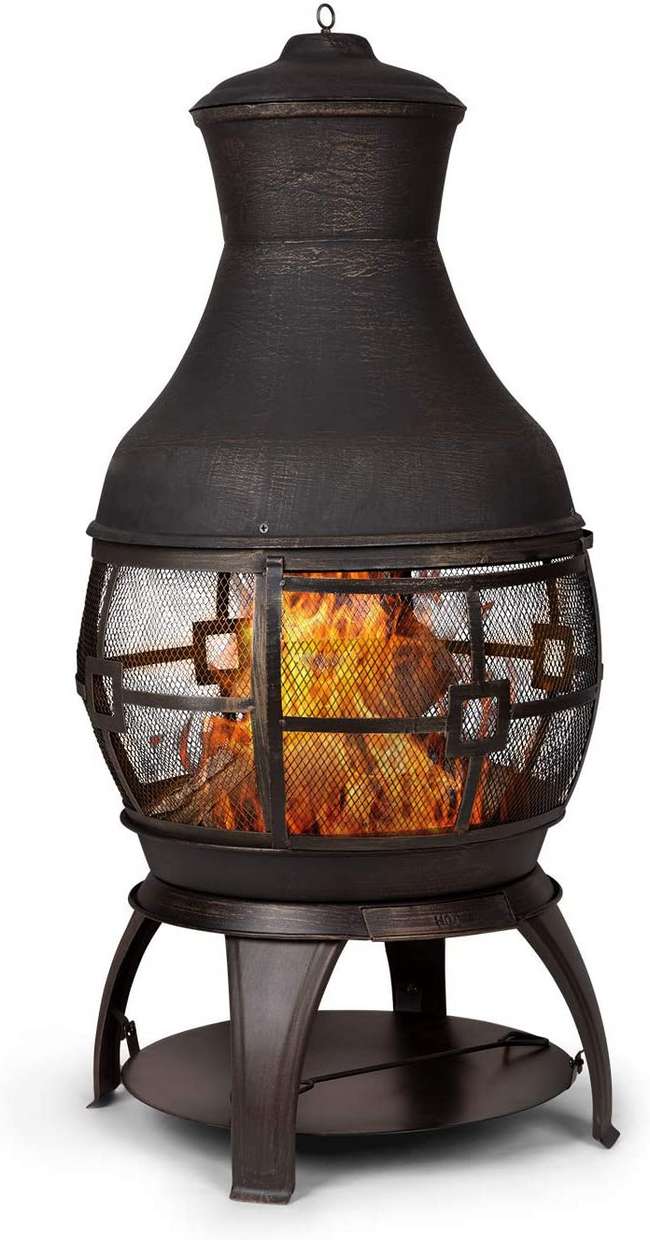 Sin duda alguna esta es una de las mejores chimeneas de jardín que podremos encontrar en el mercado. Esta chimenea aporta calor en todas las estaciones, y es resistente a la intemperie por lo que se puede utilizar en exteriores sin ningún inconveniente. Con su diseño no tendrás que preocuparte en absoluto por los humos porque está pensada para que no tengas humo en la cara. Además, cuenta con un espacio de almacenamiento de leña en el espacio del suelo para que se pueda añadir la leña fácilmente.