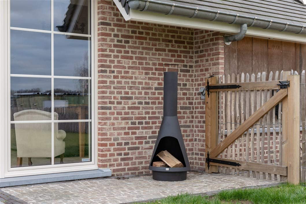 Funciona con carbón, madera o carbón vegetal, y bastará con colocarlo en la chimenea y encenderla para disfrutar del fuego. Tiene un diseño que es muy moderno, y que permite tener un ambiente acogedor en exteriores. Permite disfrutar de un ambiente cálido en los exteriores, y es un modelo que se destaca por ser muy fácil de montar. Su diseño es estable y antivuelco, y viene con una parrilla para carbón y atizador.