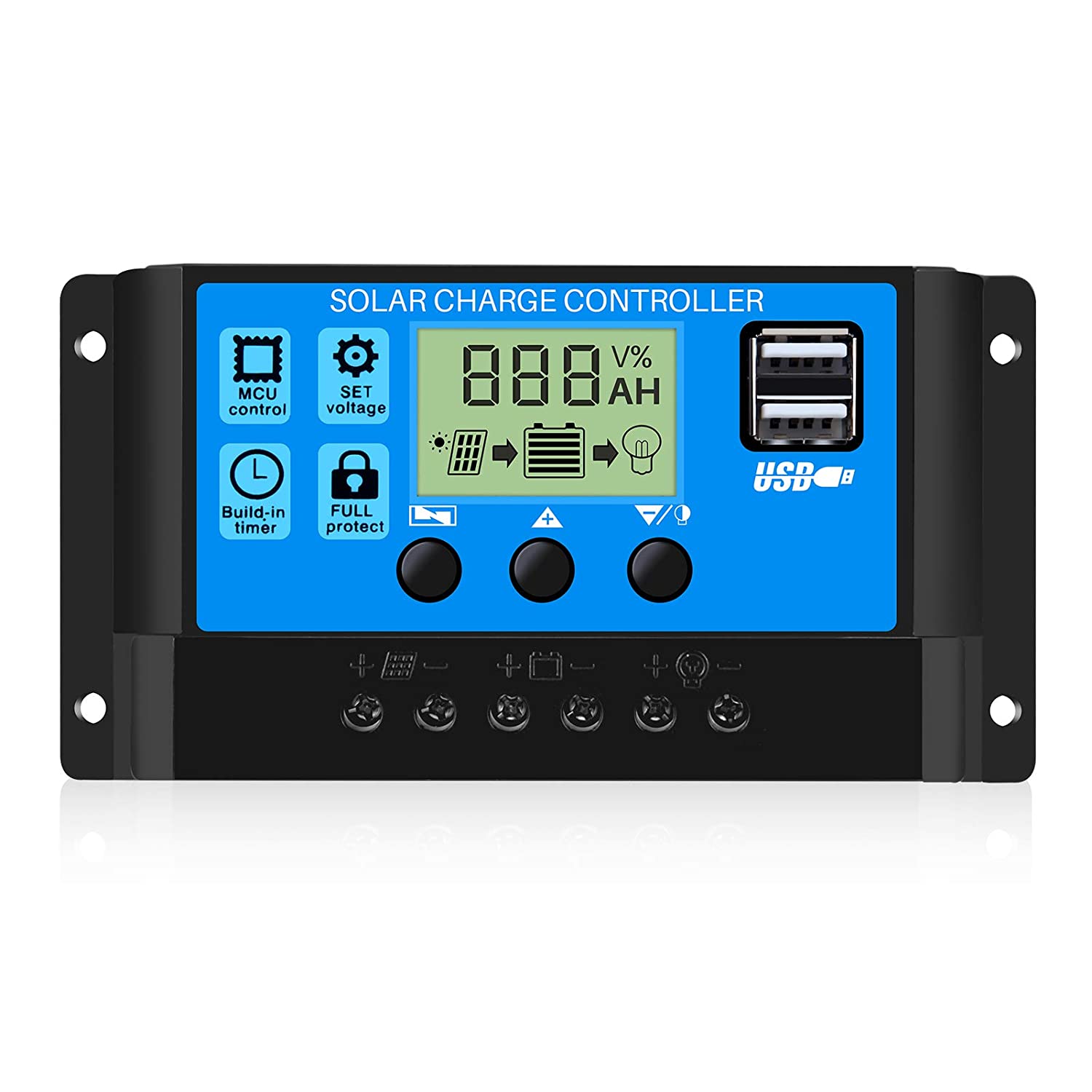 Tiene un método de carga de regulación PWM de tres etapas, que adopta la carga directa, la carga de impulso y la carga de flotación. Esto permitirá que se pueda hacer una carga inteligente eficiente y rápida. Cuenta con múltiples protecciones incorporadas, como de sobrecorriente, cortocircuito, conexión inversa, circuito abierto, y todos se restauran sin dañar el controlador. Es muy fácil de instalar y configurar, y se puede usar con todo tipo de sistemas de energía solar sin ningún tipo de problemas.