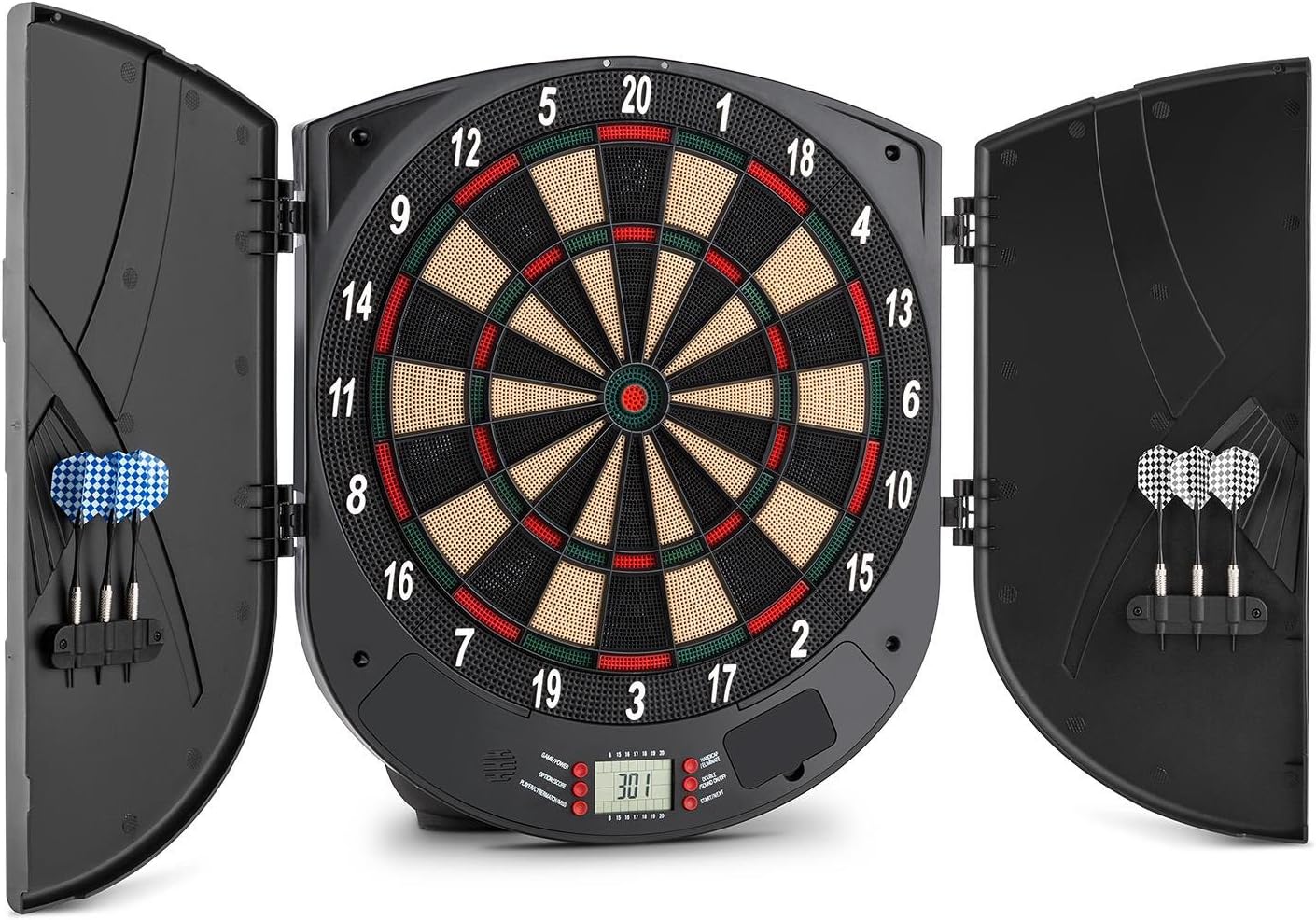 Esta es una diana electrónica de muy alta calidad que permite tener un máximo de 16 jugadores, para que puedas disfrutar de este juego en casa. Es apto tanto para niños como para adultos, y la diana tiene un sector electrónico doble y triple. Viene con un total de dos puertas, para protegerla de la suciedad, e incluye dardos suaves incluidos que se pueden guardar detrás de las puertas.