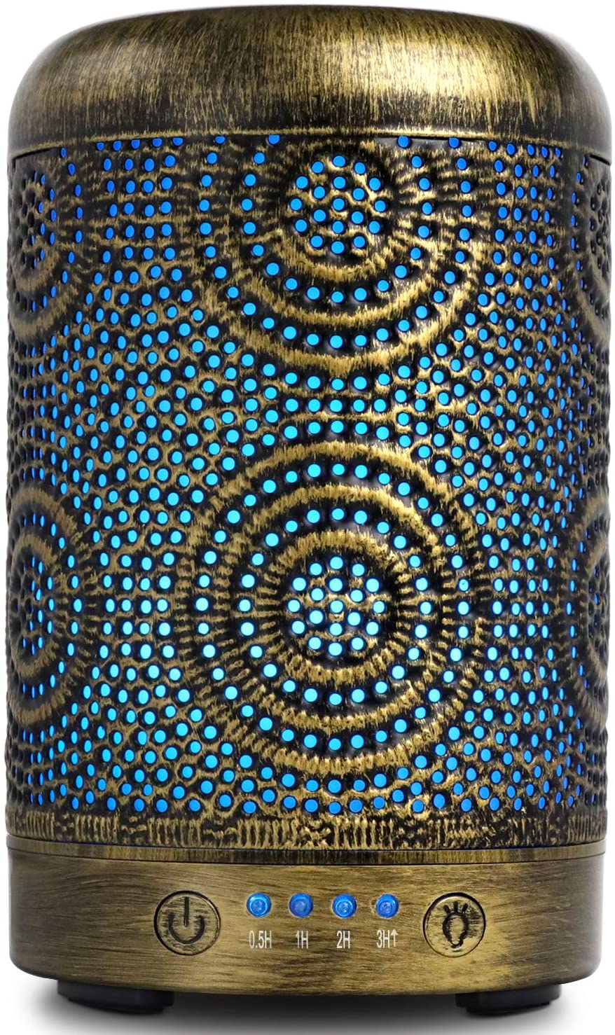 En caso de que busques un difusor de aceites esenciales con un diseño simplemente único, sin duda que este será una gran opción. Esto debido a que cuenta con un acabado metálico con un toque antiguo y vintage que te permitirá conseguir un gran elemento decorativo. Cuenta con una capacidad de 100ml, si bien es bastante baja, te permitirá tener una terapia de por lo menos 3 horas, que se puede controlar fácilmente dependiendo de tus gustos en 4 modos diferentes.