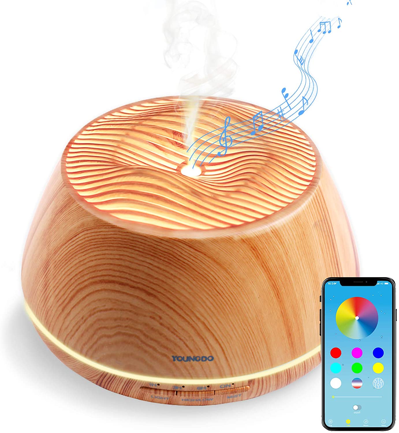 Este es uno de los modelos más completos que encontrarás, en especial porque cuenta con una conexión bluetooth para conectarlo con el móvil. Incorpora un altavoz bluetooth, lo que te permitirá disfrutar de tu música favorita mientras que tienes un aroma más relajado y cómodo en tu hogar. Es compatible con móviles Android o iOS, para controlarlo o simplemente con sus botones.