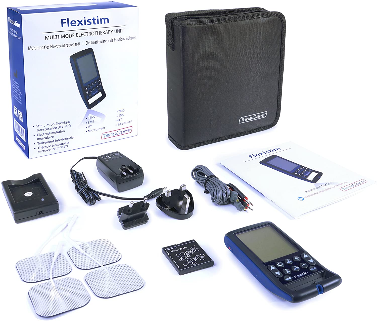 El electroestimulador de la marca TensCare es considerado como un equipo completo y versátil. Está diseñado para atender distintas necesidades, por lo cual se puede considerar multiterapia. Combina distintas funciones como TENS, EMS, IFT y microcorrientes (MIC), todos en un mismo dispositivo. Es uno de los más funcionales del mercado al coordinar distintos tratamientos en un solo equipo. Está diseñado para usar en hospitales, como para atención médica dentro del hogar.