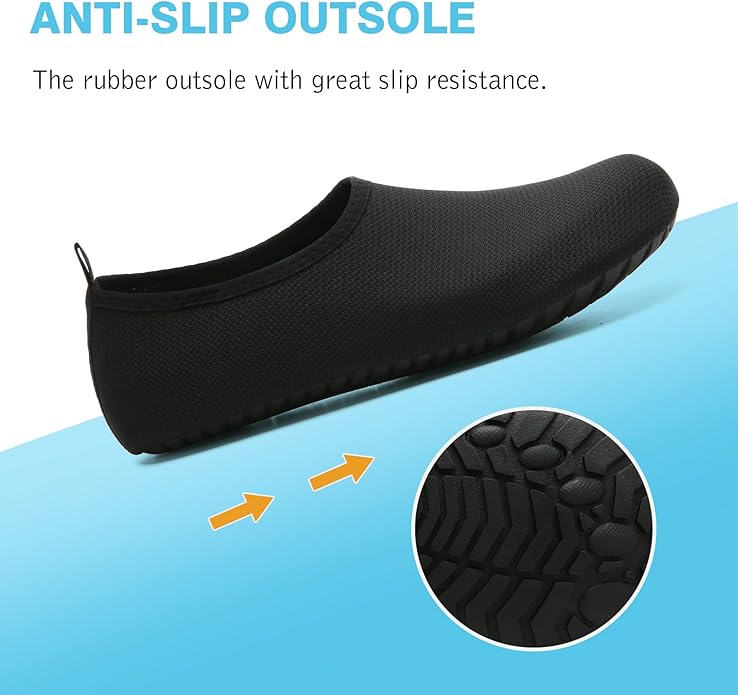 La suela de caucho está diseñada con puntos convexos que mejoran la fricción, incluso en superficies mojadas. Además, su estructura ergonómica con absorción de impactos protege los pies de piedras, corales, superficies calientes o resbaladizas. Esto los hace perfectos para ríos, piscinas naturales, o deportes acuáticos.