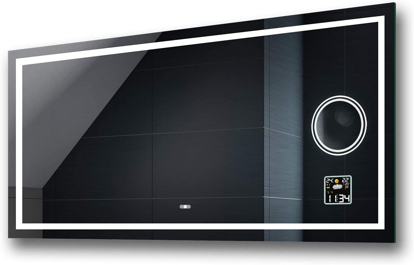 Este es un espejo inteligente barato que te será de gran ayuda en el baño, en especial porque cuenta con todo lo que necesita un aparato de este tipo. Tiene un tamaño de 60 x 80cm, y lleva un sistema antivaho para que puedas usarlo siempre que lo necesites. También cuenta con dos puertos USB lo que permitirá que conectes tus dispositivos fácilmente al espejo para que puedas recargarlos de una forma bastante sencilla.