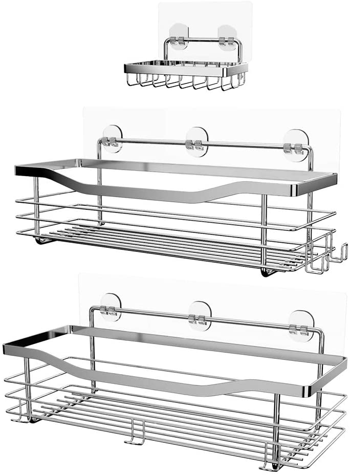 Este es un pack ideal si buscas tener una gran versatilidad en tu ducha, porque contarás con un total de 3 estantes para tu ducha. De esta forma podrás tener más espacio para el almacenamiento de tus geles, jabón, lociones, champú, entre otros. Recibirás dos cestas las cuales vienen con sus respectivos ganchos para que puedas colocar lo que se te ocurra. Todos los elementos están fabricados en acero inoxidable de alta resistencia y durabilidad.