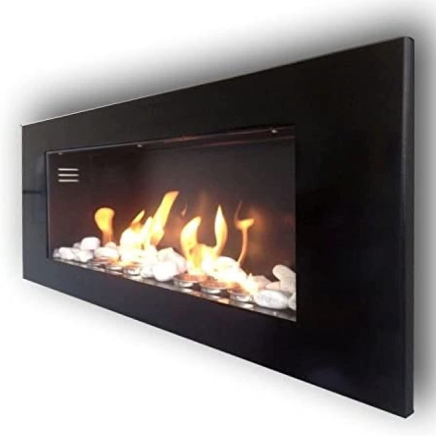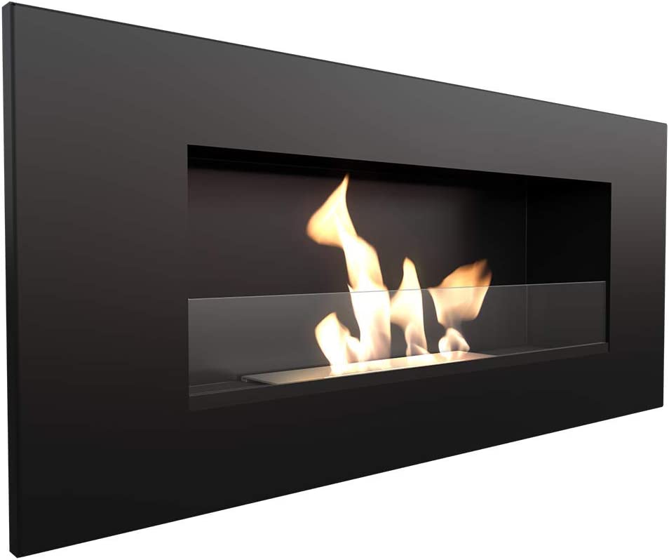 Se trata de una chimenea de bioetanol de pared que se encuentra fabricada en acero inoxidable y que está recubierta con polvo negro para darle un toque de mayor elegancia. Cuenta con certificado TÜV, por lo que cumple por completo con los requisitos de seguridad obligatorios. Podrás disfrutar de una llama siempre hermosa, es inodoro y quema absolutamente sin dejar residuos por lo que se puede utilizar sin limitaciones en interiores.
