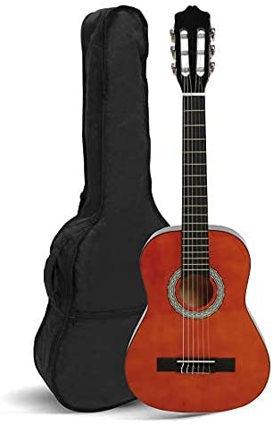 Se trata de una guitarra española para principiantes que viene con su práctica funda de transporte para llevarla a todas partes. Está disponible en diferentes tamaños, tanto completo 4/4 como los tamaños más pequeños para niños. Su funda de transporte viene con un práctico bolsillo en el que se podrán llevar todos los accesorios y tiene una práctica corea para llevarla fácilmente.